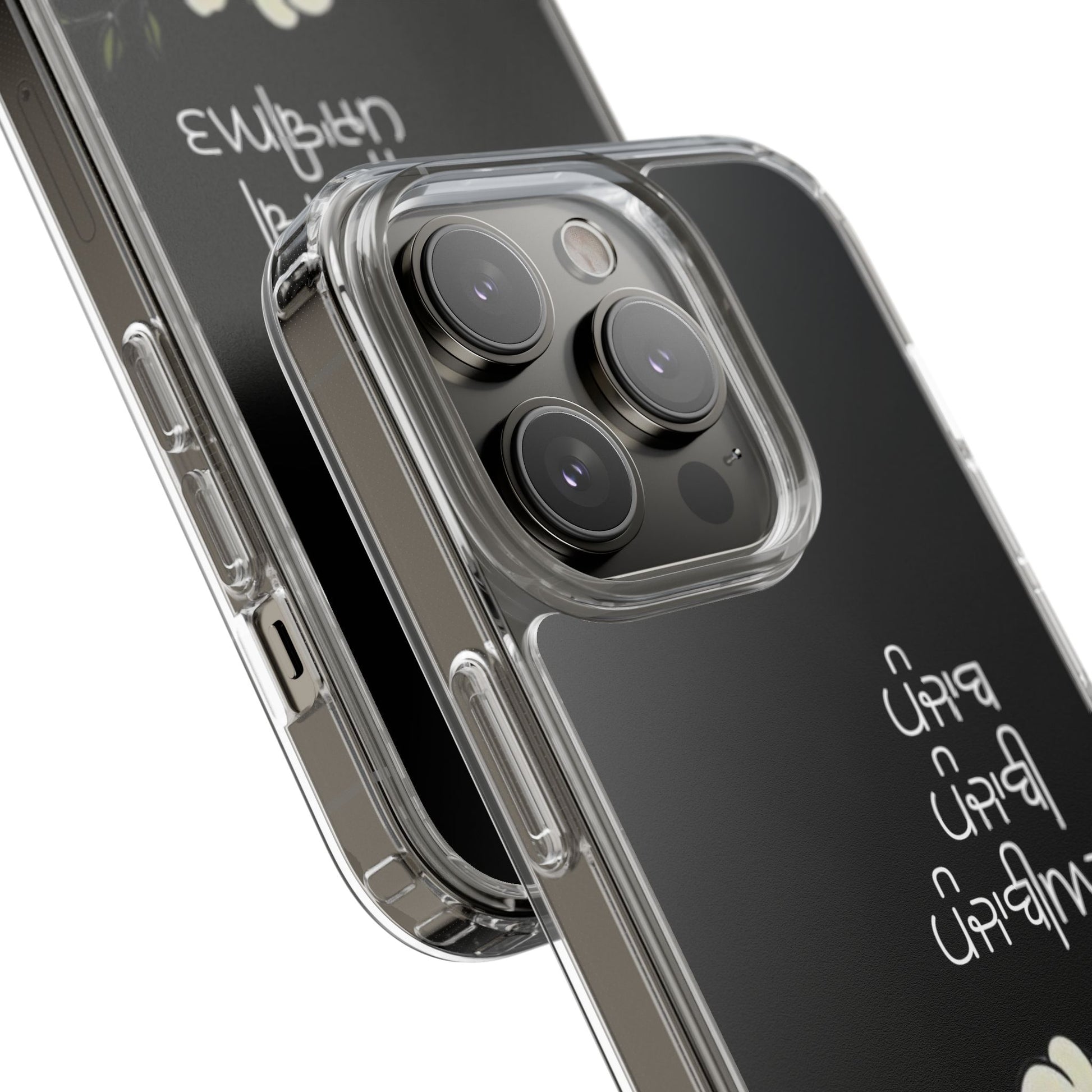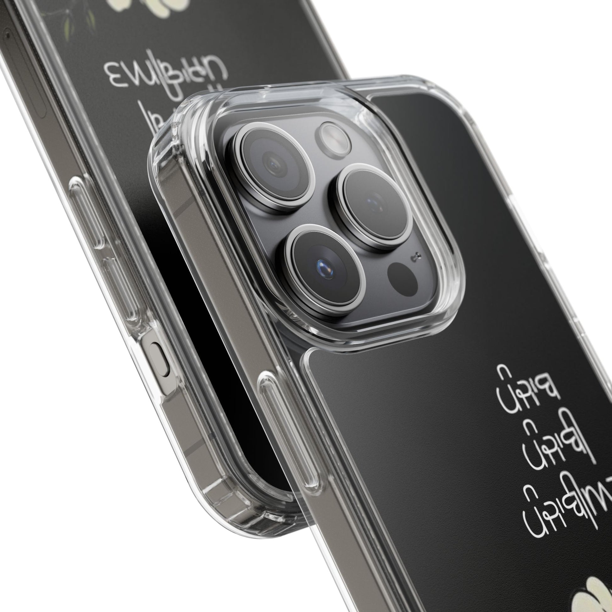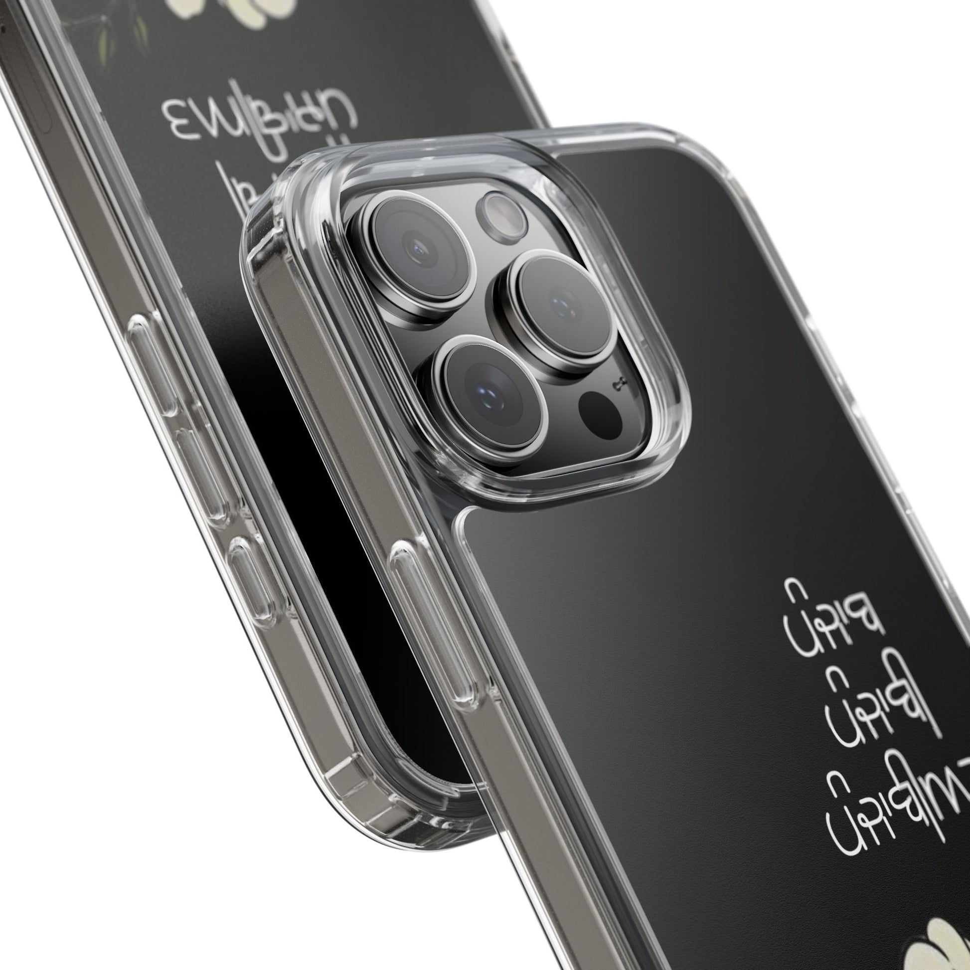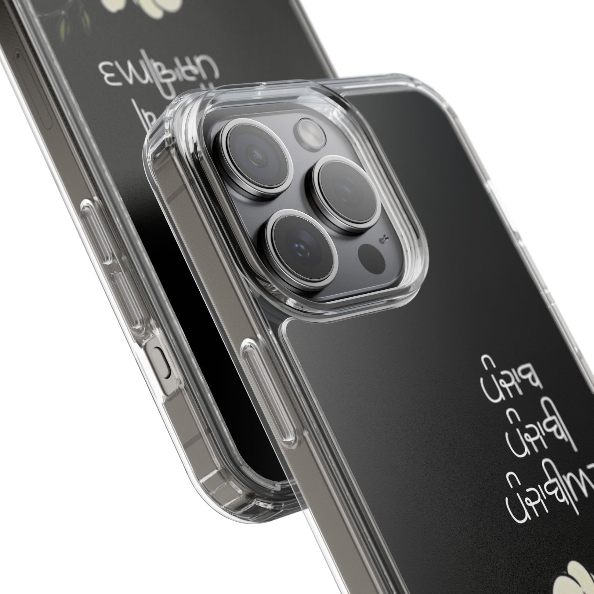 Lightweight, clear protection with a soft, floral soul. This slim clear case keeps your phone looking like yours while adding gentle shock-absorbing coverage. The transparent back showcases your device and lets the delicate white blossoms and hand-lettered script sit just above the surface, so the design feels like a quiet personal touch rather than a loud overlay. Smooth edges and precise cutouts let you charge wirelessly and use every port and button without fuss. Carry it daily — on walks, at coffee shops, or tucked into a bag — and enjoy durability that still feels refined.